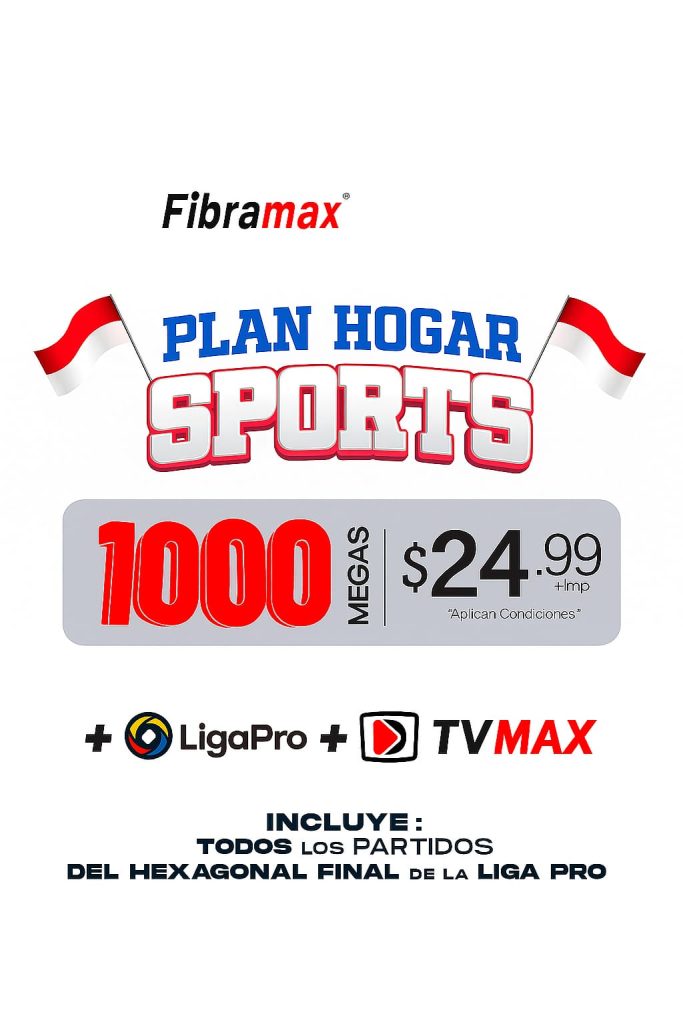 Plan de 1000 Megas mas la Liga Pro $24.99 mas Iva precio regular mensual ,como parte de la promoción obtén instalación y primer mes sin costo aplican condiciones y restricciones